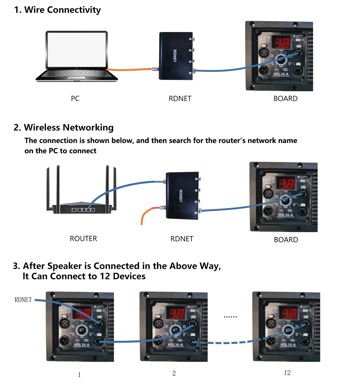 The H30-A Amplifier Module features the proprietary RDNet technology, giving real-time remote control and monitoring of all components from the front of house location. RDNet is a ‘daisy chain’ network based on the stable RS485 protocol. An RDNet Control allows to link up to 12 devices to each port.Even extremely large systems can be easily organized and managed by RDNet.