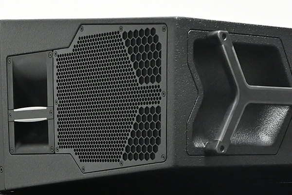| The cabinets are constructed from First grade plywood and have an impact and weather protected PCP (Polyurea Cabinet Protection) finish. The front and side panels incorporate rigid metal grills backed by an acoustically transparent and water repellent fabric. Each side panel incorporates a recessed handle, with additional handles provided at the rear. | ![]() |