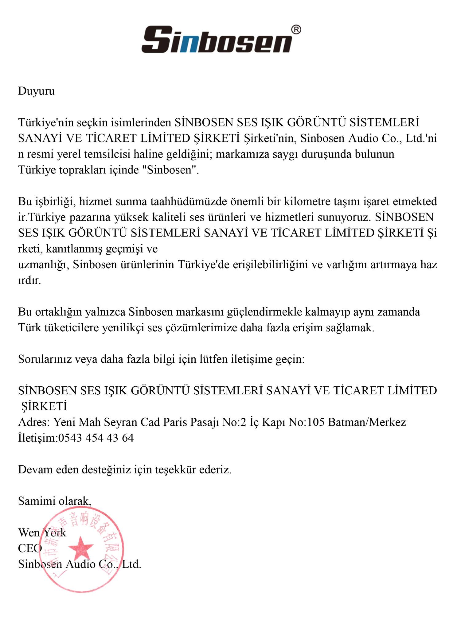 | Türkiye'deki müşterilerimize daha hızlı, güvenilir ve kolay bir satın alma deneyimi sunmak amacıyla Sinbosen yetkili yerel bayilik ağımız hizmete girmiştir. SİNBOSEN SES IŞIK GÖRÜNTÜ SİSTEMLERİ SANAYİ VE TİCARET LİMİTED ŞİRKETİ (Doğan Lighting), Sinbosen markasının Türkiye topraklarındaki tek resmi yetkili temsilcisi ve distribütörü olmuştur. Firmamız, markamızı münhasıran kullanma, tanıtma ve dağıtma yetkisine sahiptir. Artık profesyonel amplifikatörlerimize Türkiye içinden ulaşabilir ve şu avantajlardan yararlanabilirsiniz: To provide our Turkish customers with a more convenient and reliable purchasing experience, Sinbosen has established authorized local agencies. By purchasing through our local partners, you can enjoy the following exclusive benefits: 1. Yerel Stok ve Mağazada Test İmkânı Local Stock & In-Store TestingUluslararası nakliye beklemeye son! Yerel bayilerimizle iletişime geçerek ürünlerimizi yerinde test edebilirsiniz. Satın almadan önce ses kalitesini ve performansını bizzat deneyimleyerek profesyonel standartlarınıza uygunluğunu teyit edebilirsiniz.2. Gümrük Sorunlarına Kesin Çözüm Say Goodbye to Customs HassleBildiğiniz üzere, Türkiye’nin amplifikatör gibi elektronik cihazlara yönelik gümrük mevzuatı oldukça katıdır.Eski Zorluklar: Bireysel ithalatlarda gümrükte takılma riski ve yüksek vergiler mevcuttu. Müşterilerimiz cihazları "yedek parça" olarak ayrı ayrı getirtmek, beklemek ve ardından kendileri monte etmek zorunda kalıyordu; bu da hem zaman kaybı hem de teknik risk demekti. Yeni Avantaj: Yerel bayilerimiz üzerinden doğrudan fabrikada montajı yapılmış ve test edilmiş tam kapasite cihazlar alabilirsiniz. Tüm gümrükleme ve ithalat işlemleri bayimiz tarafından halledilir. Karmaşık evrak işleri, beklenmedik vergiler veya parça birleştirme sorunlarıyla uğraşmanıza gerek kalmaz. As many of you know, Turkish customs regulations for power amplifiers are extremely strict. The Old Pain Point: Individual imports often faced severe customs clearance issues and high tariffs. Customers were forced to ship amplifiers as "disassembled spare parts," wait for multiple packages, and then attempt to reassemble the units themselves—a process that is time-consuming and risky. 3. Güvenilir Yerel Teknik Destek Reliable Local SupportYerel bayiden satın almak, sadece kolaylık değil, aynı zamanda satış sonrası hizmete ve teknik desteğe anında ulaşabilmeniz demektir.Buying from a local agent means more than just convenience; it means having professional technical support and after-sales service right at your doorstep. |