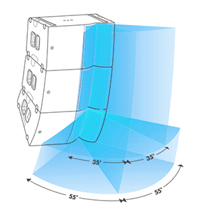 | KA10 Focus and KA10 Wide feature Adjustable Fins to adjust the waveguide directivity to one of four settings: 110° / 70° symmetric or 90° asymmetric (35°/55° or 55°/35°). | ![]() |